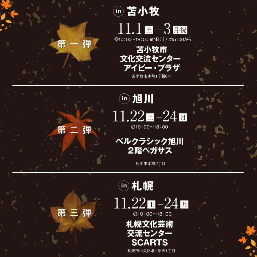第1弾は11/1(土)~11/3(月・祝)に苫小牧市文化交流センター、